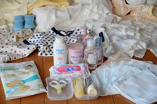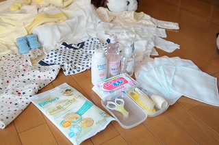 ↑ 新品はデリケートな赤ちゃんの肌によくないと洗濯。