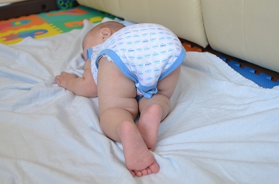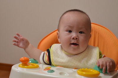”這い這い”も時間の問題ってところまできているし、動きに伴って表情も赤ちゃんから子供へと変わってきたようだ。 |
