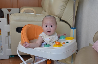 今にも立ちそうな仕草はしていたけど、ソファに手をかけて立ち上がったのには驚いたけど、その時に見せた得意満面な笑顔は一生忘れないわ。 (この写真は、8月31日に撮影しました。) |